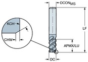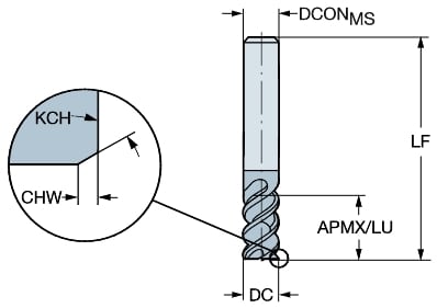 1131P 高硬度(HRc63マデ)加工用 超硬コーティングエンドミル ネジレ角50°φ8 4枚刃 有効長=19mm 鋼/SUS/鋳物/耐熱合金/高硬度(HRc63まで)加工用 サンドビック R216.34-08050-AK19H 1010 新品 | 超硬っと(チョコット)工具 ソリッド工具販売